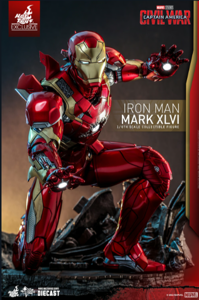 A figura do Homem de Ferro Mark XLVI em escala 1/6 apresenta: